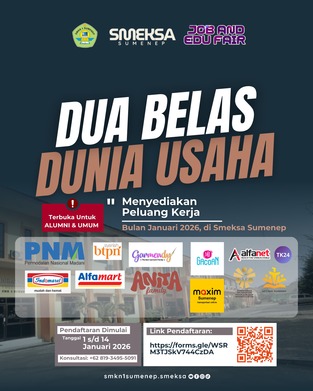 “Kegiatan Job and Edu Fair SMKN 1 Sumenep ini sangat tepat dilaksanakan. Murid mendapatkan kesempatan untuk berinteraksi langsung dengan perusahaan dan perguruan tinggi, sehingga mereka bisa memahami secara lebih nyata peluang kerja maupun pendidikan lanjutan yang tersedia,” ujar Rusliy. Jum’at (2/1/2026) malam.